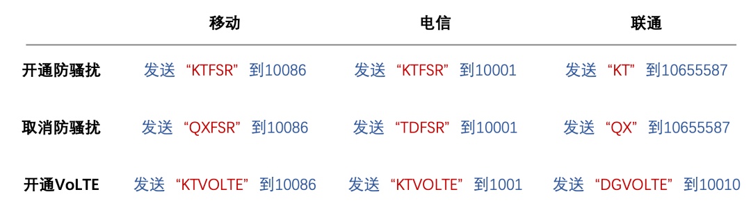 对此,移动、电信、联通三大运营商都推出了官方免费的防骚扰电话屏蔽业务,操作如下图,不过这个功能仅限4G用户,同时还需要开通VoLTE业务。