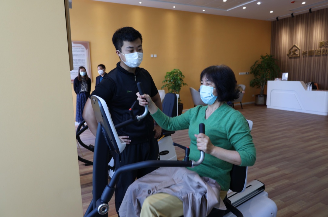 馆内配置了专业老年人跑步机、等速腿部前踢训练机、血压计等适老化健康促进设备10件,可以为老年人提供健康检测、科学指导、器械锻炼、健康讲座、运动方案制定、慢病干预等服务。