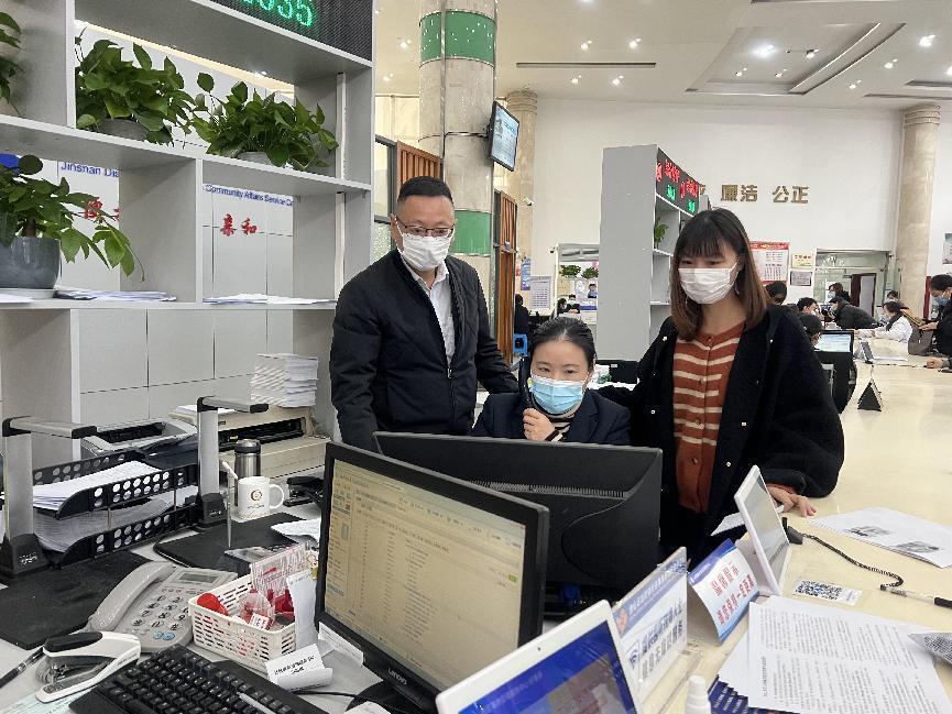 ▲走访街镇社区事务受理中心住房租赁备案窗口,进行业务指导