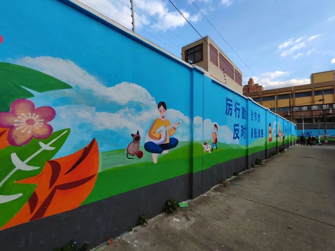 “这面墙附近居民众多,原先墙面由于长期风吹日晒雨淋,早已斑驳褪色,破旧不堪,有的地方墙体脱落砖块清晰可见,影响整体观感,一度成为创全工作中的一个“痛点”,为了进一步提升环境,经过多部门商定,最终决定将这里打造成新时代文明实践主题墙。”相关部门负责人表示,彩绘墙以“同创全国文明城区·共建宝山美好家园”为主题,内容围绕垃圾分类、文明出行等,弘扬新时代社会文明新风。通过彩绘墙的形式展示,既提升了周边环境,又宣传了创全新风尚。