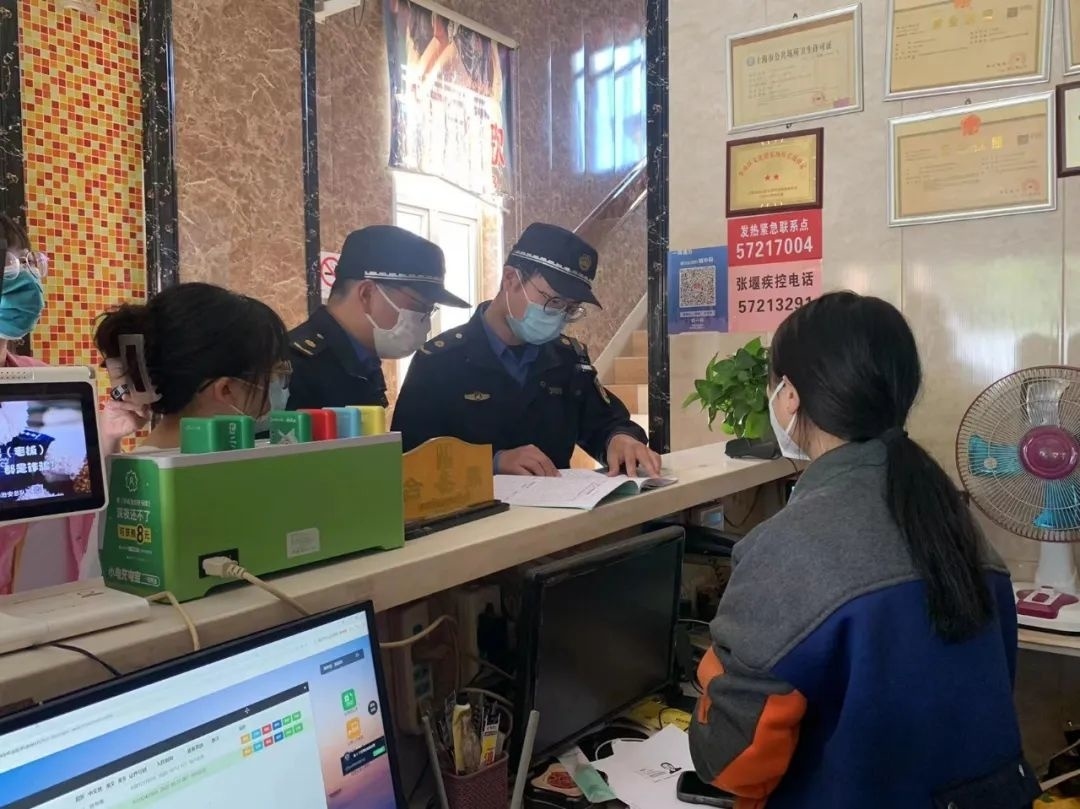 近日,为筑牢疫情防控壁垒,更好地保障市民的身体健康和生命安全。张堰镇文体中心、镇疫情防控办、市监、公安、城管等多部门联合开展了文娱场所疫情防控专项监督检查,落实落细各项疫情防控措施。