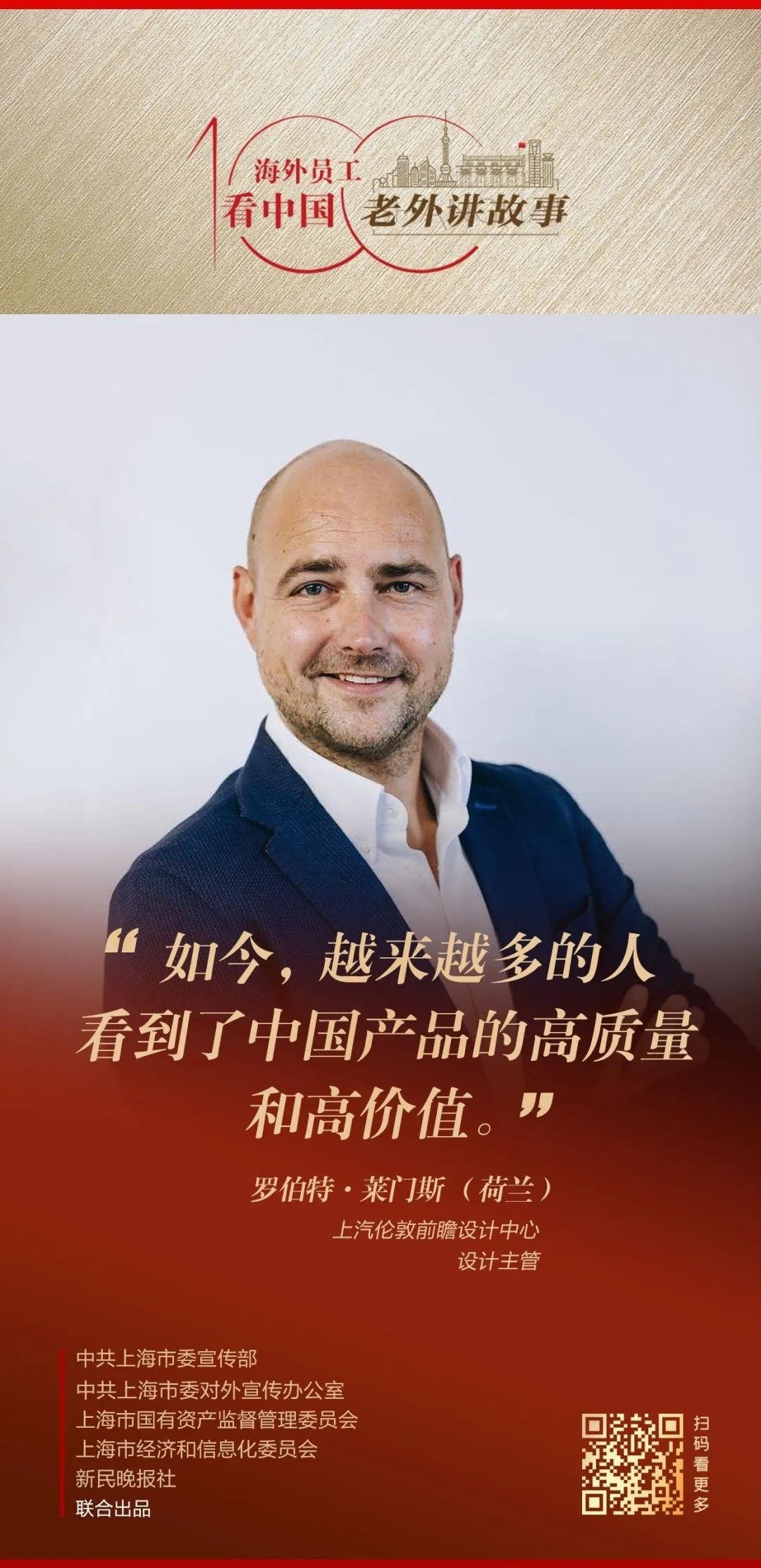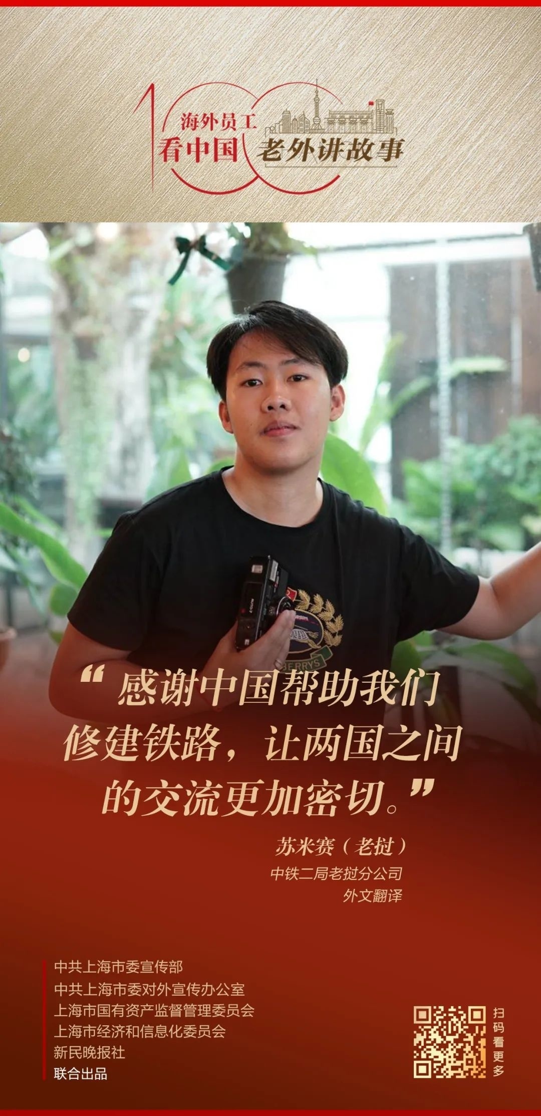 由中共上海市委宣传部、中共上海市委对外宣传办公室、上海市国有资产监督管理委员会、上海市经济和信息化委员会、新民晚报社联合出品的《老外讲故事•海外员工看中国》百集融媒体产品最新推出评述篇,银岩资本执行合伙人史蒂文·洛克菲勒三世讲述自己身处中国企业、观察中国的真实感受。以及38-40期内容,元泰柬埔寨公司副总裁特蕾西、上汽伦敦前瞻设计中心设计主管罗伯特·莱门斯、中铁二局老挝分公司外文翻译苏米赛讲述在中国企业的真实感受。详见↓