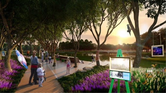 公园将凭借良好的滨水视野和茂密的森林资源,打造以水滨丛林探索为特色的文化地带,为市民提供丰富的亲水活动空间。