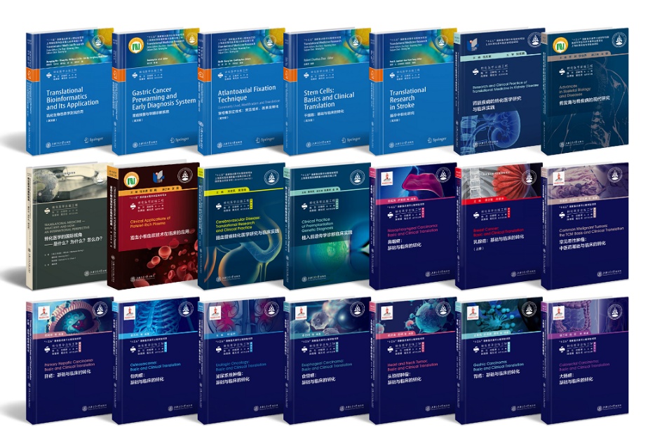 “转化医学出版工程”以陈竺院士、沈晓明教授为总主编,立足基础与临床的相互转化,总体规划50本左右,“技术系列”以英文为主,获得了国家科技出版基金、经典中国出版基金、丝路书香出版基金、上海科技出版基金等多项国家和上海市的资助,“肿瘤系列”也获得2020年度国家出版基金资助,2期共出版图书20余种。