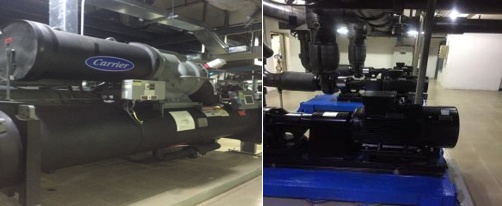 空调系统采用4台离心式冷水机组替换原有的2台溴化锂机组和2台特灵离心式冷水机组;2018年10月至2019年10月,逐步对原有水泵进行了更新和变频改造;2018年3月至6月对原冷却塔的风机电机进行更换、对冷却塔的填料进行更换。