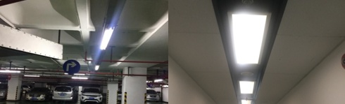 改造前,大厦公共区域的照明设备为传统灯具;自2017年9月,陆续采用LED灯具替换原照明设备,改造区域包括公共区域、地下车库、走廊、办公室、会议室等。