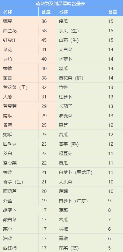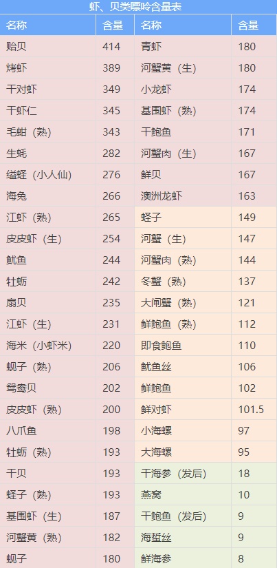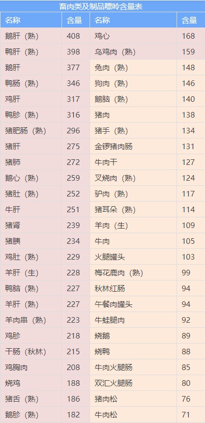 最全食物嘌呤含量表,