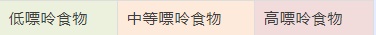 根据食物嘌呤含量不同,分为三个等级,分别用不同颜色的底色对三个级别的食物进行区分。这些高嘌呤食物就建议大家要少吃了!