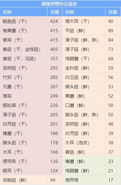 内脏、海鲜>肉类、豆类>主食、谷物>蔬菜、水果