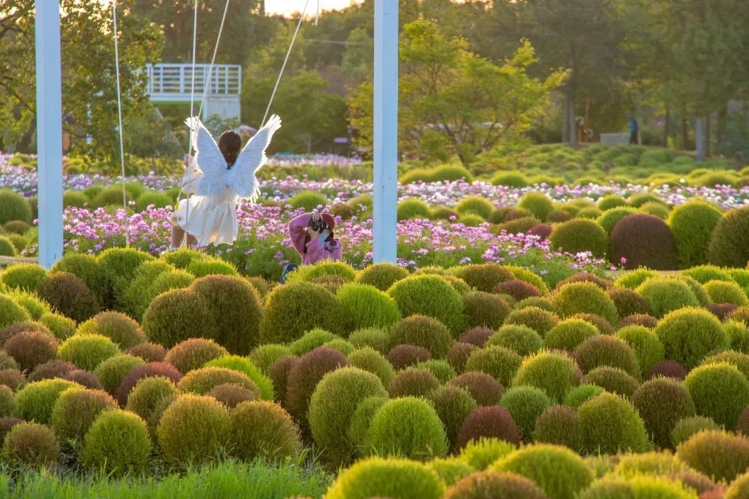 连日的降温让位于世纪公园乡土田园区20000㎡红叶地肤进入了“换装”期。个别植株呈红变紫,夹在多数嫩绿植株之中,与绿地蓝天相互映衬,画面色彩绚烂。