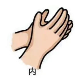 手心对手背沿指缝相互揉搓,双手交换进行。