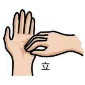 弯曲各手指关节,把指尖合拢在另一手掌心旋转揉搓,双手交换进行。