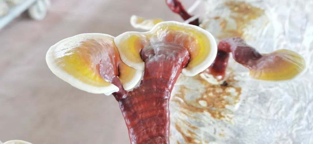 据介绍,金边灵芝的菌盖外围有一圈金黄色的生长边,这就是所说的金边,当这圈金黄色的生长边开始慢慢消退,说明灵芝已经成熟,可采摘。灵芝可以泡水、泡酒、煲汤,具有强身健体的功效。目前,合作社共有6500个菌包,一年可以采收4茬,约1万朵金边灵芝。