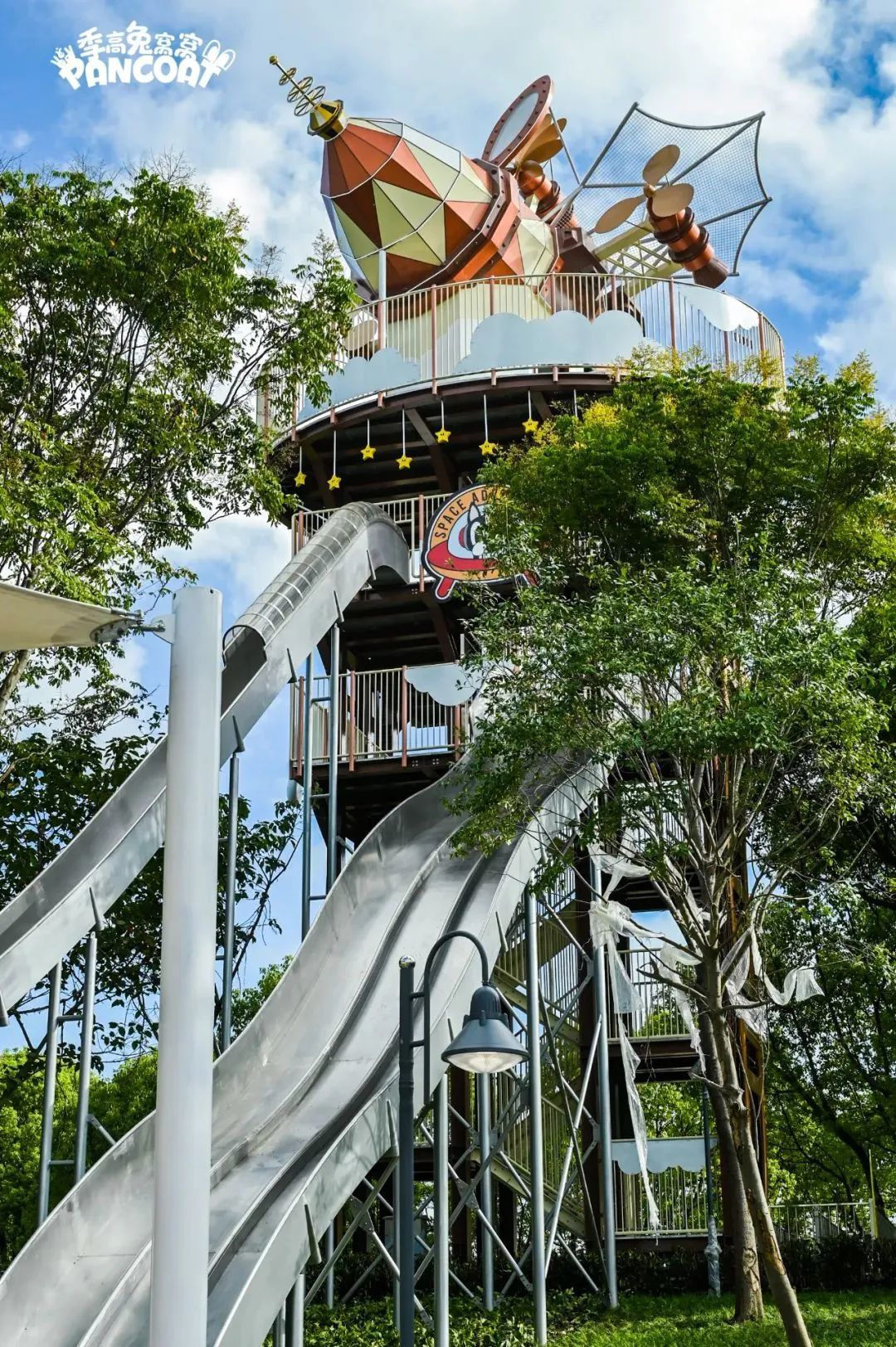 这里不仅有为低龄宝宝设计的沙池、小滑梯、秋千、攀爬区等幼儿玩乐设施;还有儿童和成人都可以放肆玩的大型攀爬区、秋千、吊床、海盗船……
