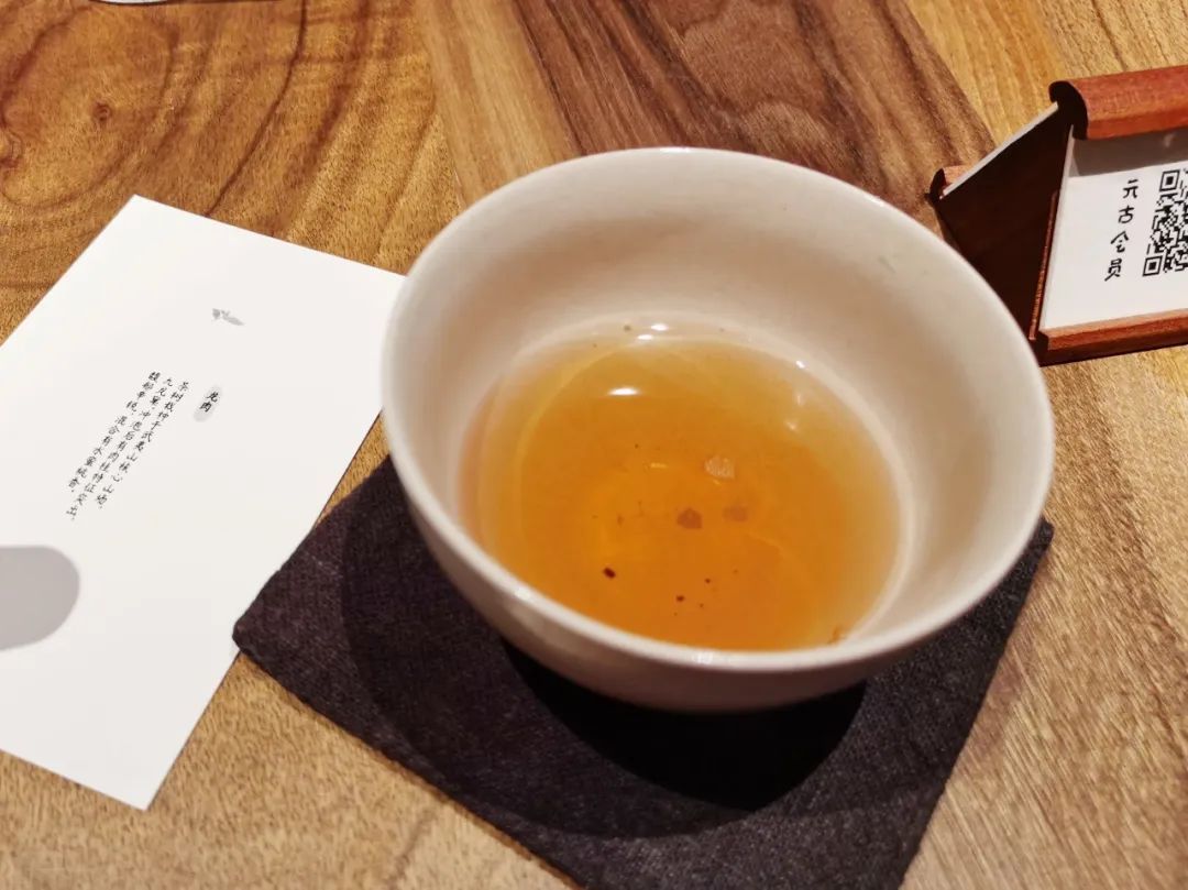 正值秋季,推荐尝试产自福建武夷山核心山场的龙肉。店内遵循传统的饮茶状态,经洗茶、泡茶后,茶汤色泽红褐,能品出肉桂和水蜜桃香。