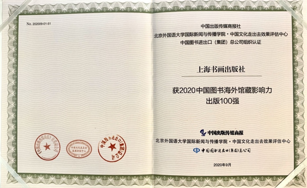 5.中心整合、扩大上海书画出版社品牌和平台的互动作用,聚合作者资源优势,并积极与国家图书馆、上海博物馆、上海图书馆、中央美院、中国美院、日本东京博物馆等一批海内外重点机构建立合作,利用图书、期刊、会议等多种功能,出版了一批学术经典、珍稀史料和原创成果,进一步增强了上海书画出版社的作者和选题优势,凸显了出版特色,促进了学术出版高地建设。2019年起,书画社连续两年进入“中国图书海外馆藏影响力出版100强”。