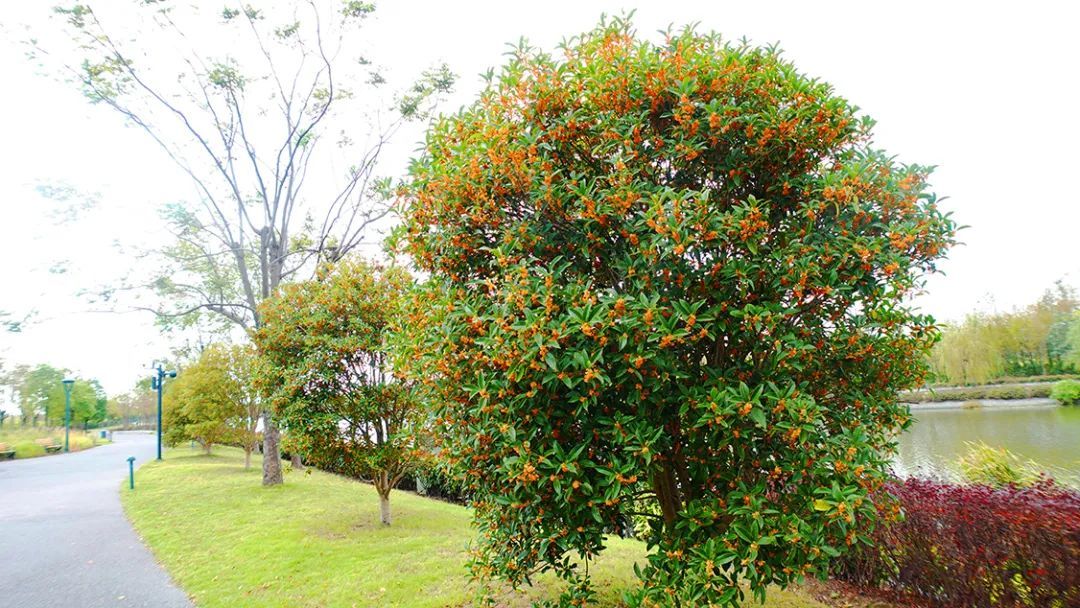 上海街头绿地、公园、小区内,桂花树很常见。如果看到一棵树的枝叶对生、叶脉的形状如同“圭”字、拥有叠生芽、树干分布着菱形皮孔、树皮粗糙呈灰白色,就可以判断这棵是桂花树。