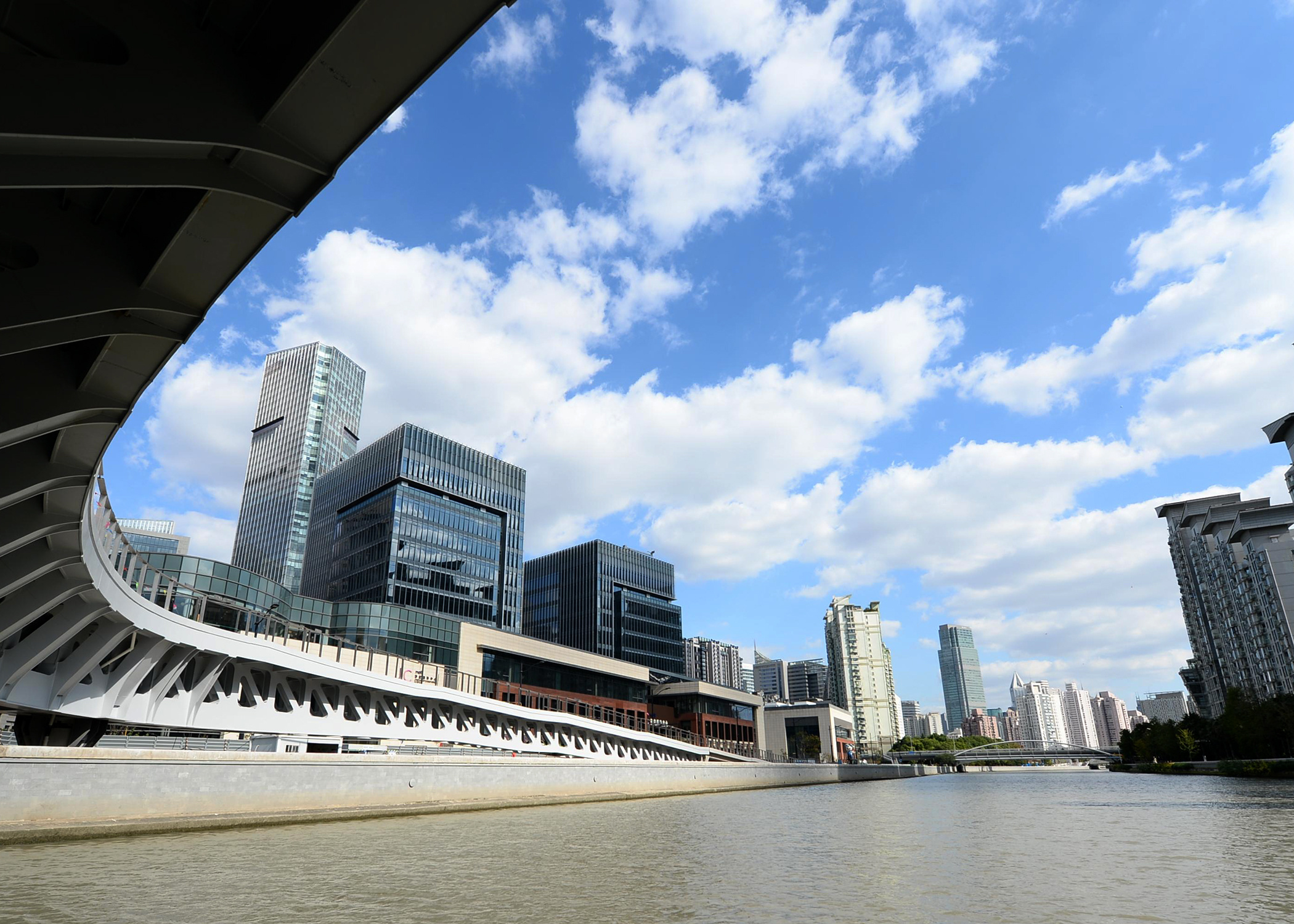 △苏河之上看静安,两岸是鳞次栉比的城市建筑,身旁是波光粼粼的一湾碧水,秋日,让我们漫步苏河吧!