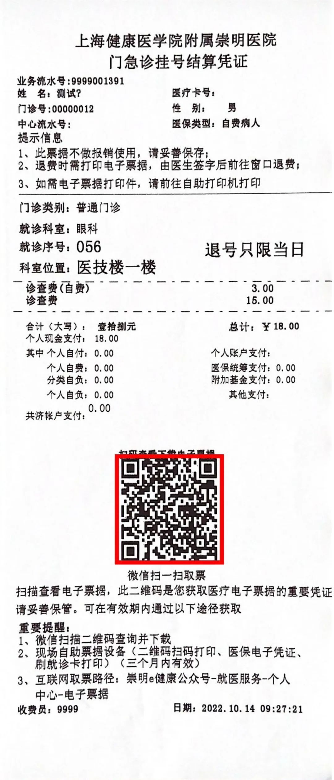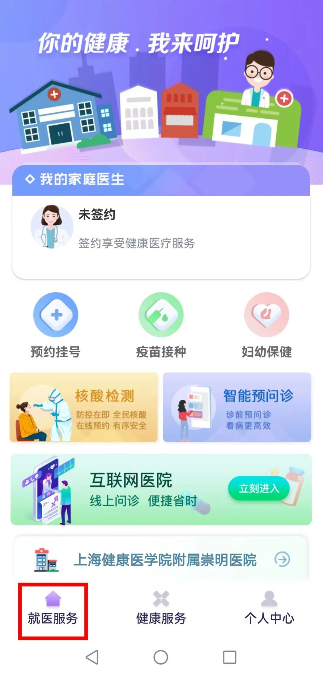 【崇明e健康】公众号取票路径: