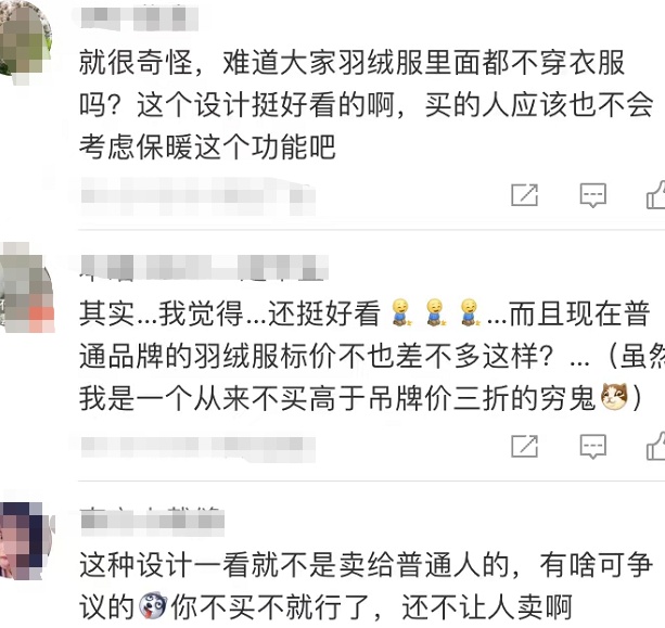 有潮流人士称,镂空、元宇宙、图案拼接等是当下时尚界偏爱的潮流元素,羽绒服、棉服等也渐趋时尚,不过对于大众消费者而言,羽绒服的基本功能还是保暖,品牌不能“本末倒置”。