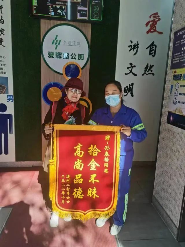 情况发生后,她急人所急,第一时间将此事上报给班组长,没过多久,失主就前来公厕寻找遗失的手机,孙春梅通过核实比对,在确认无误后,将手机归还给了失主。失主李阿姨激动地说:“现在的手机都存有大量个人信息,如果真丢失了就麻烦大了。”几天后,失主李女士还将一面写有“拾金不昧,高尚品德”的锦旗送到公厕保洁员孙春梅的手里。