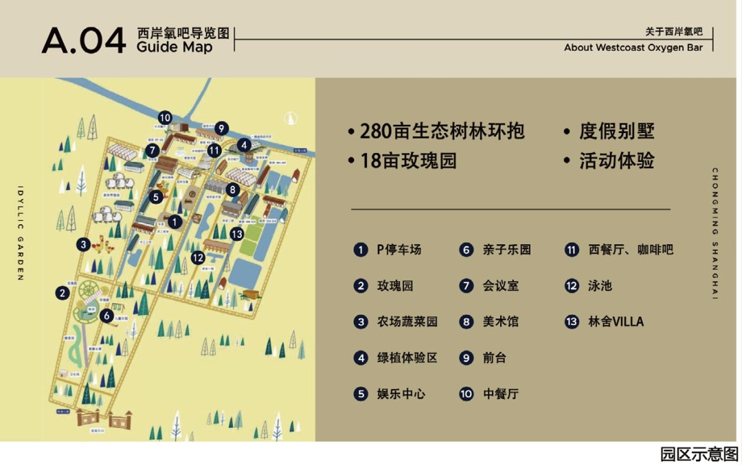 “西岸氧吧”是一个集民宿、咖啡、美食、观光等一体的综合性度假花园,总占地面积400亩,拥有“林舍”民宿客房20间,可容纳150人用餐的中餐厅,配套有游泳池、18亩玫瑰花园、草坪婚礼区、森林烧烤场、足球场、亲子菜园、盆景展示区等,是都市人远离城市喧器、享受田园乐趣的岛上乐园。