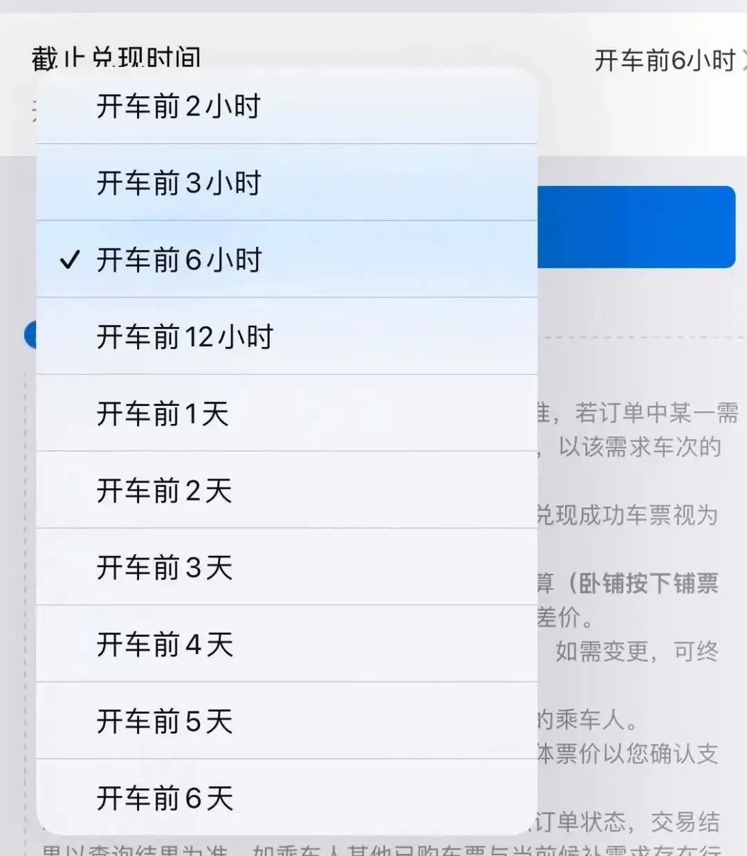 自2022年1月5日起,延长候补最晚截止兑现时间至开车前2小时。