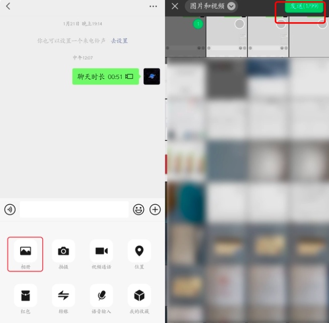 点击“相册”、选中图片/视频