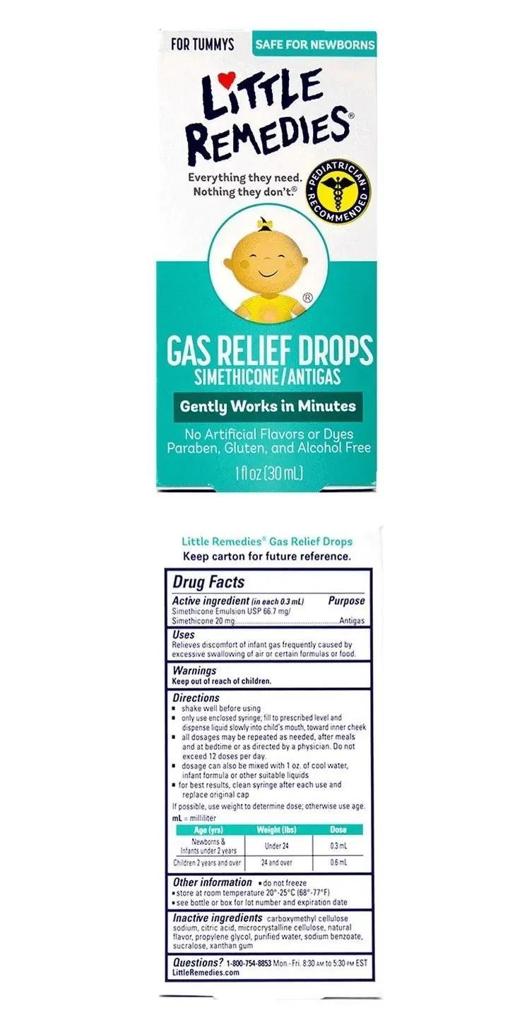 主要成分:西甲硅油乳剂、西甲硅油、羧甲基纤维素钠、柠檬酸、微晶纤维素、天然草莓风味、丙二醇、纯化水、苯甲酸钠、三氯半乳糖、黄原胶。功能用途:缓解婴儿因吞入空气或特定配方奶和食品引起的胀气不适,适用于新生儿和2岁以下婴幼儿。