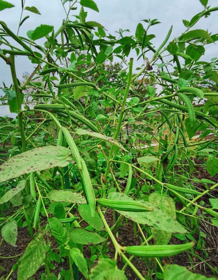 叶间开着朵朵艳丽的小黄花,顶端叶子的边缘像刀子一样锋利……目前,城市菜园内的新型保健蔬菜长蒴黄麻已开花,还有一部分正结着幼果。