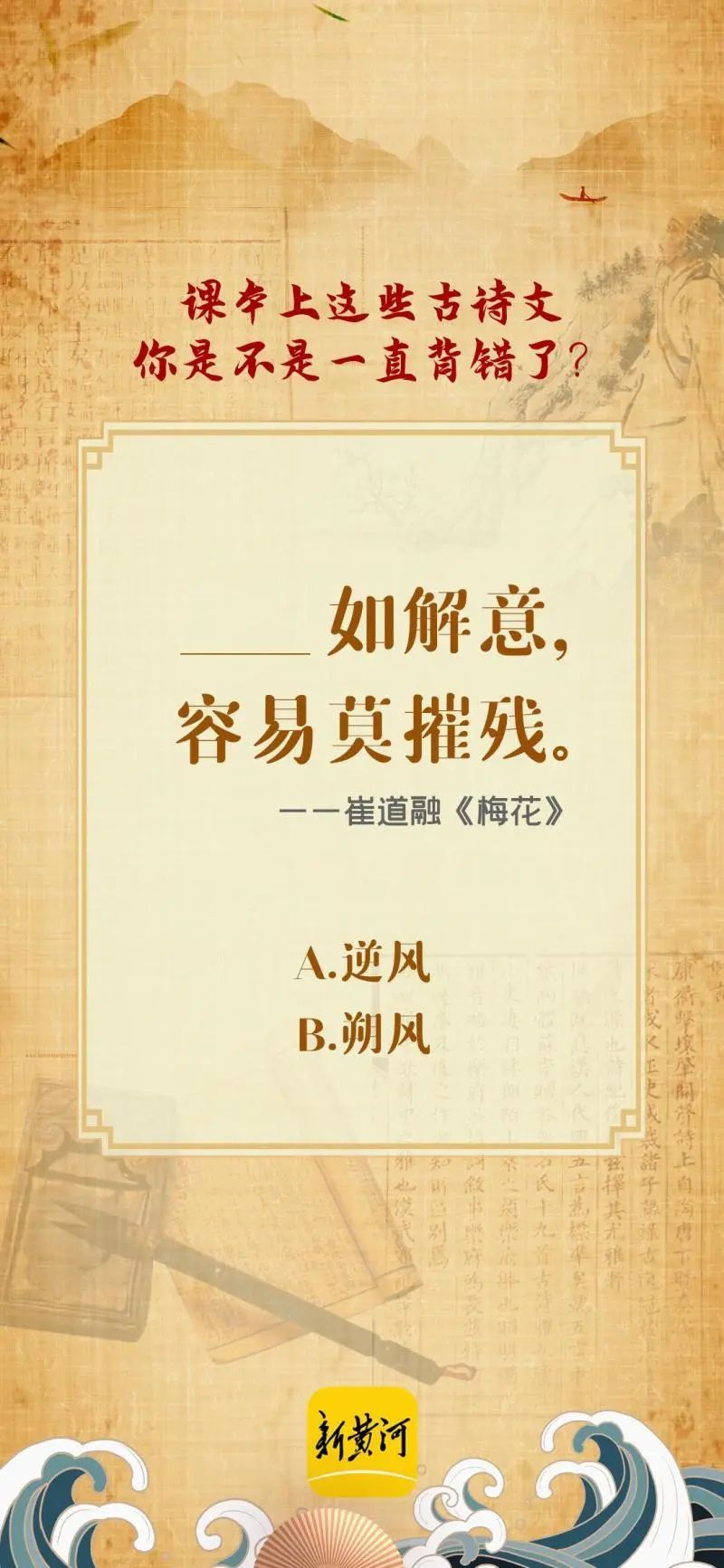事实上,这句诗来源于唐代崔道融的《梅花》,原文是“朔风如解意,容易莫摧残”,“朔风”的意思即为北风。诗人希望北风如果理解怜梅之意,就请不要轻易摧残它。