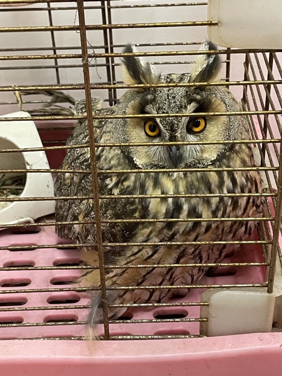 民警慢慢接近着猫头鹰,抓到后小心翼翼地放入笼中,避免二次伤害。之后,民警把猫头鹰带回派出所,并与林业部门以及野生动物保护协会取得联系寻求帮助。