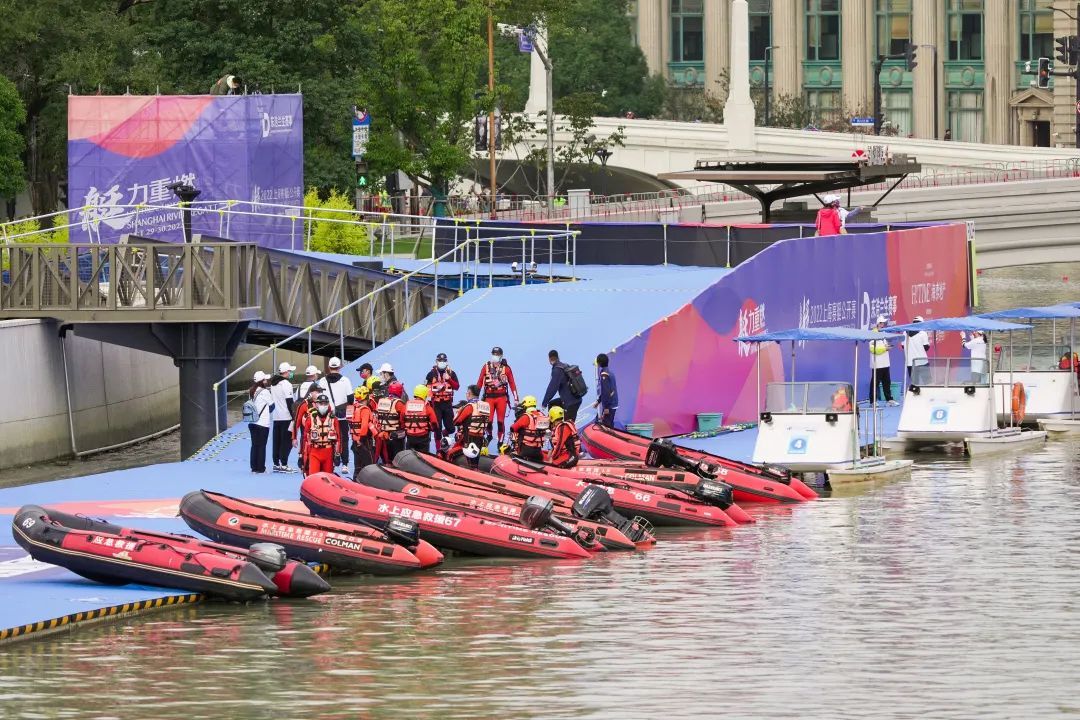 将目光看向赛场周围,有这样一群人,他们维持着安全秩序、引导着参赛选手、指引着出入口方向......从引导处到赛艇边,从观众区到颁奖点,他们遍布于苏州河畔的各个角落,不仅是“上艇”的志愿者,更是赛事能够圆满成功的“保障人”。