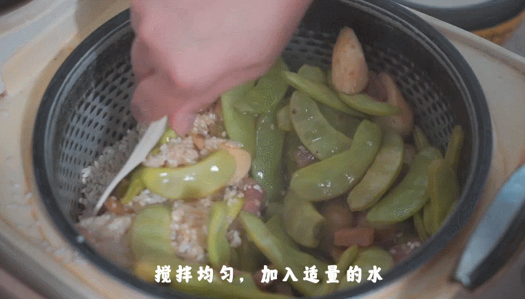 7. 加适量水(正常煮米饭的水量即可),搅拌均匀