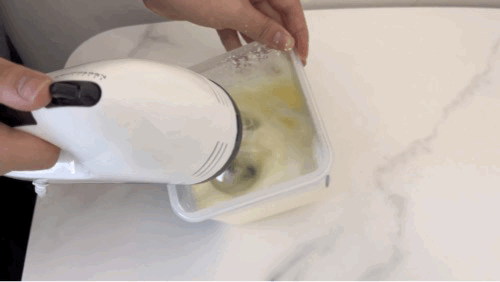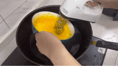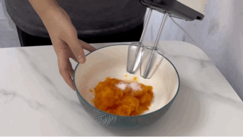 步骤1:蛋黄和糖一起隔热水打发至发白蓬松状态。