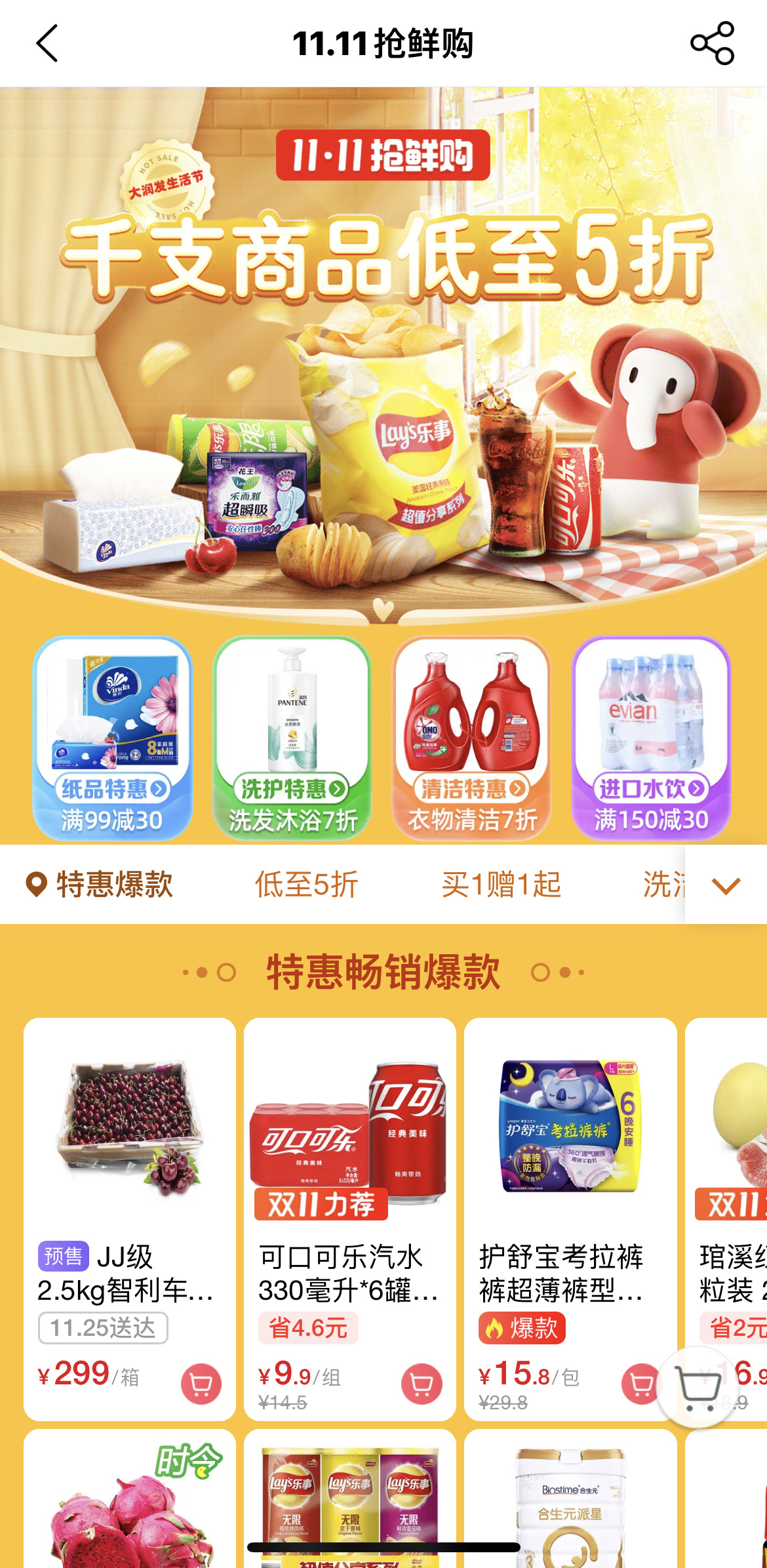 聚焦烟火气,限时特供福建红心柚、当季苹果和冰鲜黄鱼、新鲜草鱼等水果生鲜,消费者不但可以有好的购物体验,也能买到实惠商品。