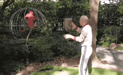 这个健身角,曾作为为民办实事项目增添了智能竞赛车、背肌训练器等不少器材,还保留了其他健身角看不大到的“另类”器材,单杠、双杠、石担、石锁等。你看,这位练的石锁,足有二三十斤重,前后“轻轻”一摔,再利用手臂、腰腹、腿部同时配合才能完成一套看似轻松的动作。