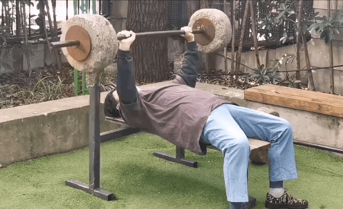 这里锻炼的老人,大多对这石担“情有独钟”,时不时前来操作一番,只见老人上前,深呼吸一把把抬起,没有人保护,让人看了有点吓丝丝的。