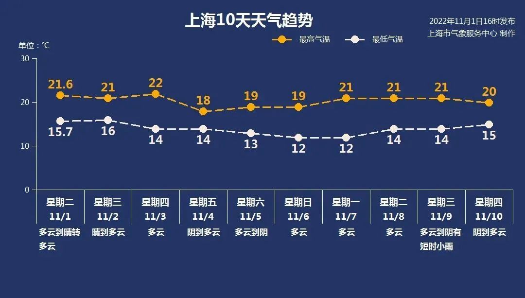 而对于南方地区来说,11月3日前,大部区域气温略偏高。在冷空气南下之后,气温则偏低。江南一带未来几天内,最高气温会从20°C以上降至20°C以下,秋凉加重,体感上寒意明显,请市民注意气温波动。