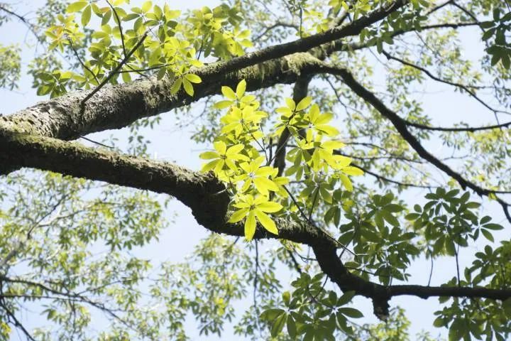 据《中国植物志》介绍,七叶树(Aesculus chinensis)是一种高大的落叶乔木,叶子多是7片小叶合在一起的掌状复叶,因为蔽荫的效果良好,常被作为庭园树及行道树。