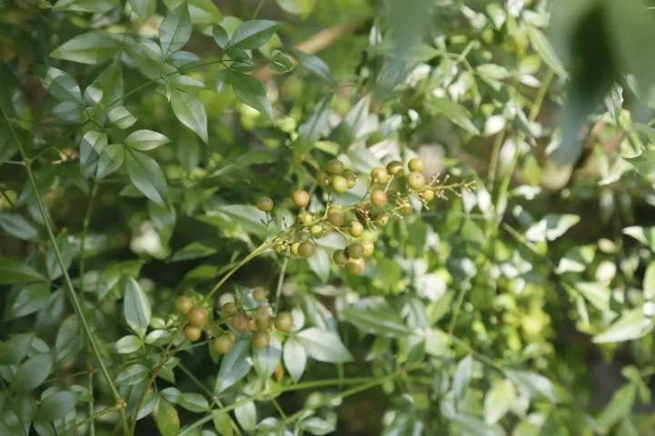 南天竹是常见的观赏植物,是一种常绿小灌木。果期较长,为5~11月,作药物后有镇咳功效,但过量食用容易中毒。