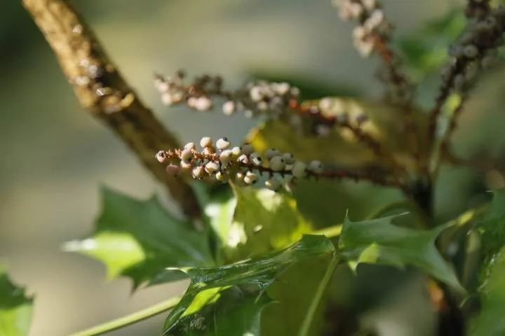 别看这串果子不大,它有着霸气十足的名字“十大功劳”,又名黄天竹、土黄柏、猫儿刺、土黄连、八角刺、刺黄柏。之所以被赋予“十大功劳”这一名字,是因为这种植物全株及根、茎、叶均可入药,且药效卓著,“十”只是虚数,意指用途繁多。