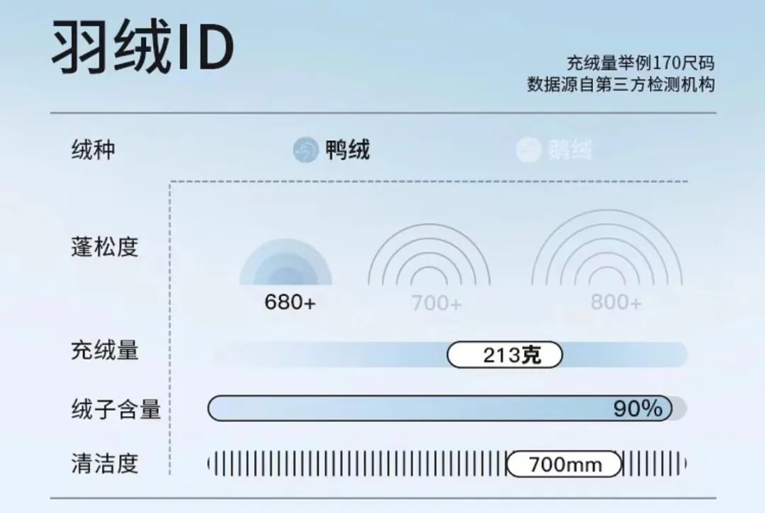 举例来说,以往的含绒量90%并不代表绒子含量90%,而是绒子和绒丝等含量90%。显然,绒子含量更能代表羽绒服的品质。同时,新国标明确服装成品绒子含量不低于50%,才能称之为羽绒服。而对于羽绒种类,也只要求标注鸭绒和鹅绒,不区分灰绒和白绒。在比较难以直观展现的方面,新国标还增加了成品洗涤后外观质量的考核要求,蓬松度测试方法、防钻绒性的考核及评价方法等的改进,进一步规范羽绒服行业发展。