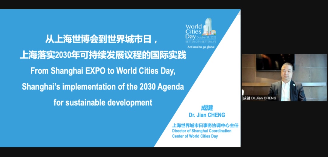 在主旨演讲环节,上海世界城市日事务协调中心主任成键发表了“从上海世博会到世界城市日,上海落实2030年可持续发展议程的国际实践”的报告,介绍了世界城市日的缘起,并详细介绍了上海近年来重点推动形成的全球可持续发展城市奖(上海奖)、全球城市监测框架——上海应用指数、《上海手册——21世界城市可持续发展指南》、《上海自评估报告》等4个与可持续发展密切相关的标志性成果。
