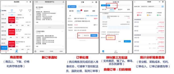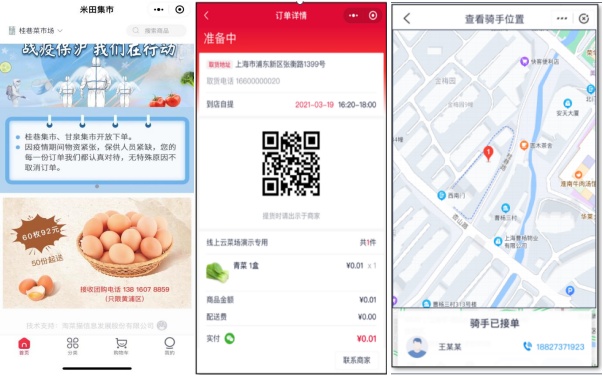 提供 O2O 电商管理后台(功能集成于“智慧菜场管理系统”)和配套前端小程序,为市场开展线上业务提供信息化平台和工具,为 C 端消费者提供“线上下单-送货上门”“线上下单-到市自提”的便捷买菜服务。通过开展 O2O 线上服务,为市场建立起线上线下业务融合新模式,拓展市场盈利渠道,抢占线上流量,为市场和商户创收。