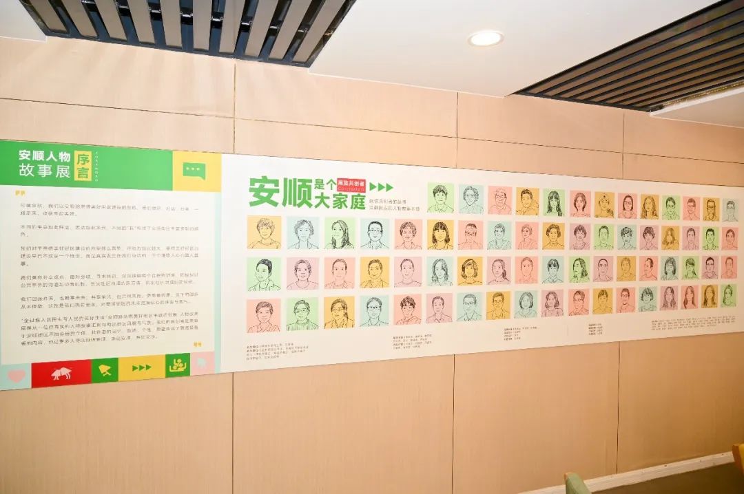 而在美好生活服务站,小小的空间也随着展览焕然一新。在这里,一幅幅人物肖像画、一个个真实的人物故事、一张张流露着幸福的全家福,汇聚勾勒出街区的风貌与气质。他们来自安顺街区不同的个体,通过他们的记忆、叙述、个性、愿望构成了展览的重要内容,也让更多人得以倾听安顺、走进安顺、共创安顺。