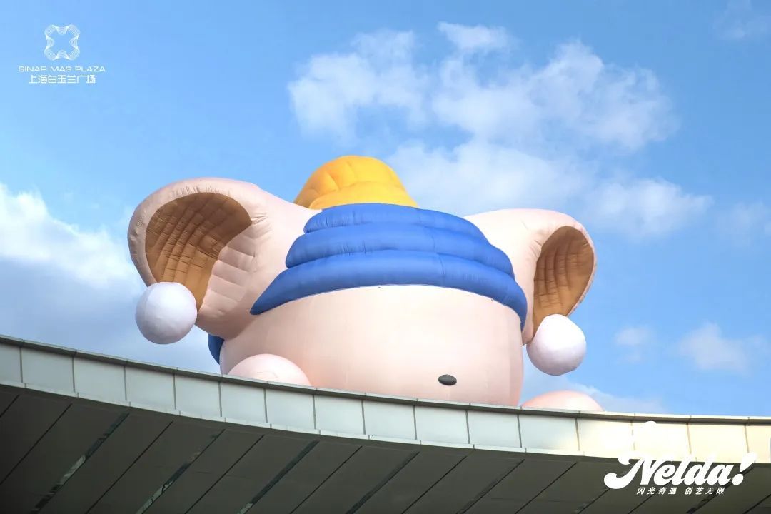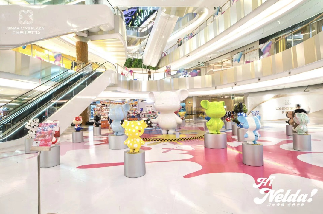 在白玉兰广场LG1好特卖门口,打卡奇趣墙和白玉兰原创艺术IP展“Hi Nelda!”吸引了顾客们前去一探究竟。地上“全城半价,火力种草”8个大字格外醒目。大家除了和艺术装置合影留念,还纷纷拿出手机扫二维码参与活动。