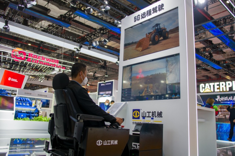 “这就是我们的5G远程驾驶解决方案。”这名工作人员说,利用5G通信技术,操作员在“虚拟驾驶室”中,使用熟悉的机器显示屏和通用的控制装置实施远程操作。“虚拟驾驶室” 既可布置在施工现场的指挥中心,也可布置在远离施工现场的指挥中心,在保持对机器进行平稳和精确控制的同时,减轻操作疲劳并加强操作的安全性,可以用于危险区域的抢险救灾。