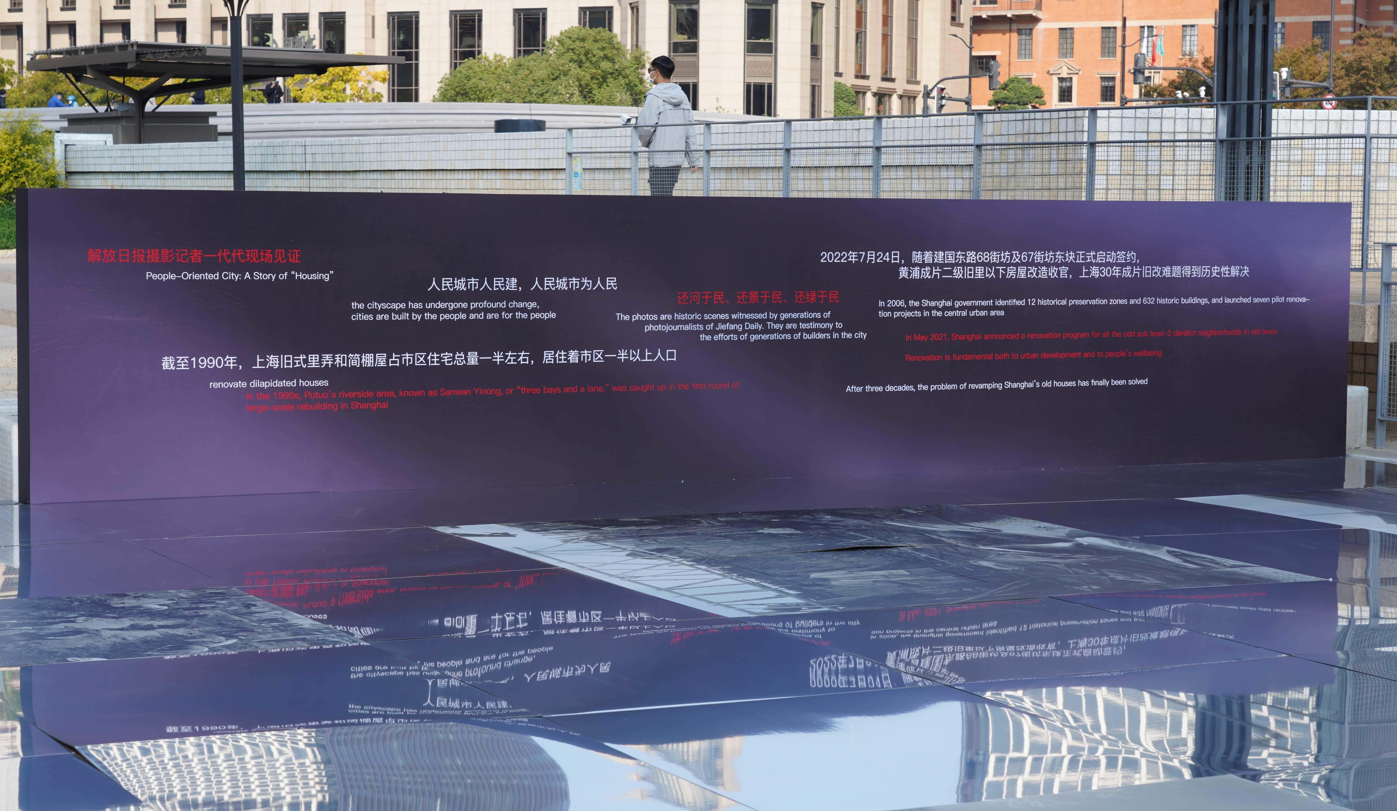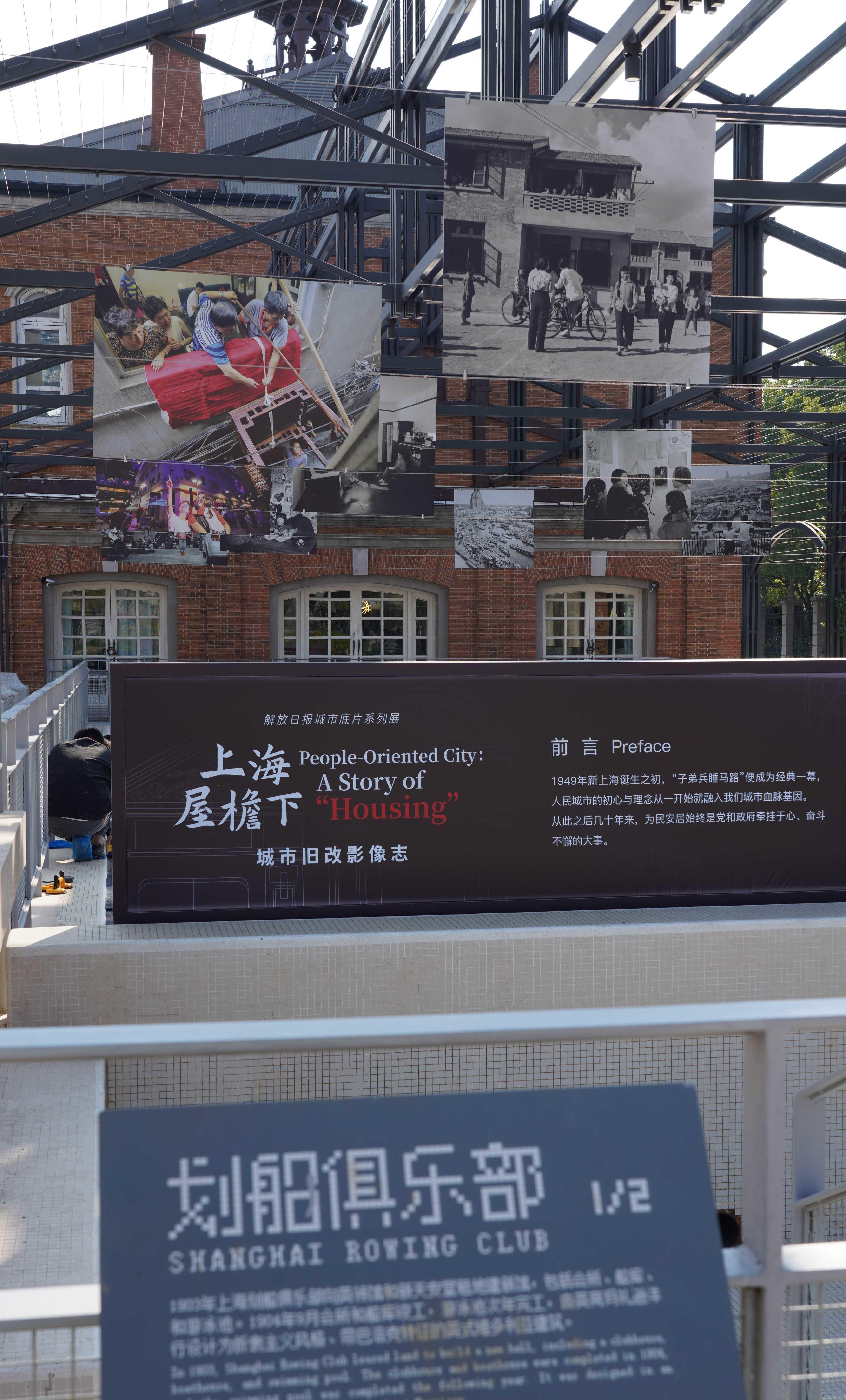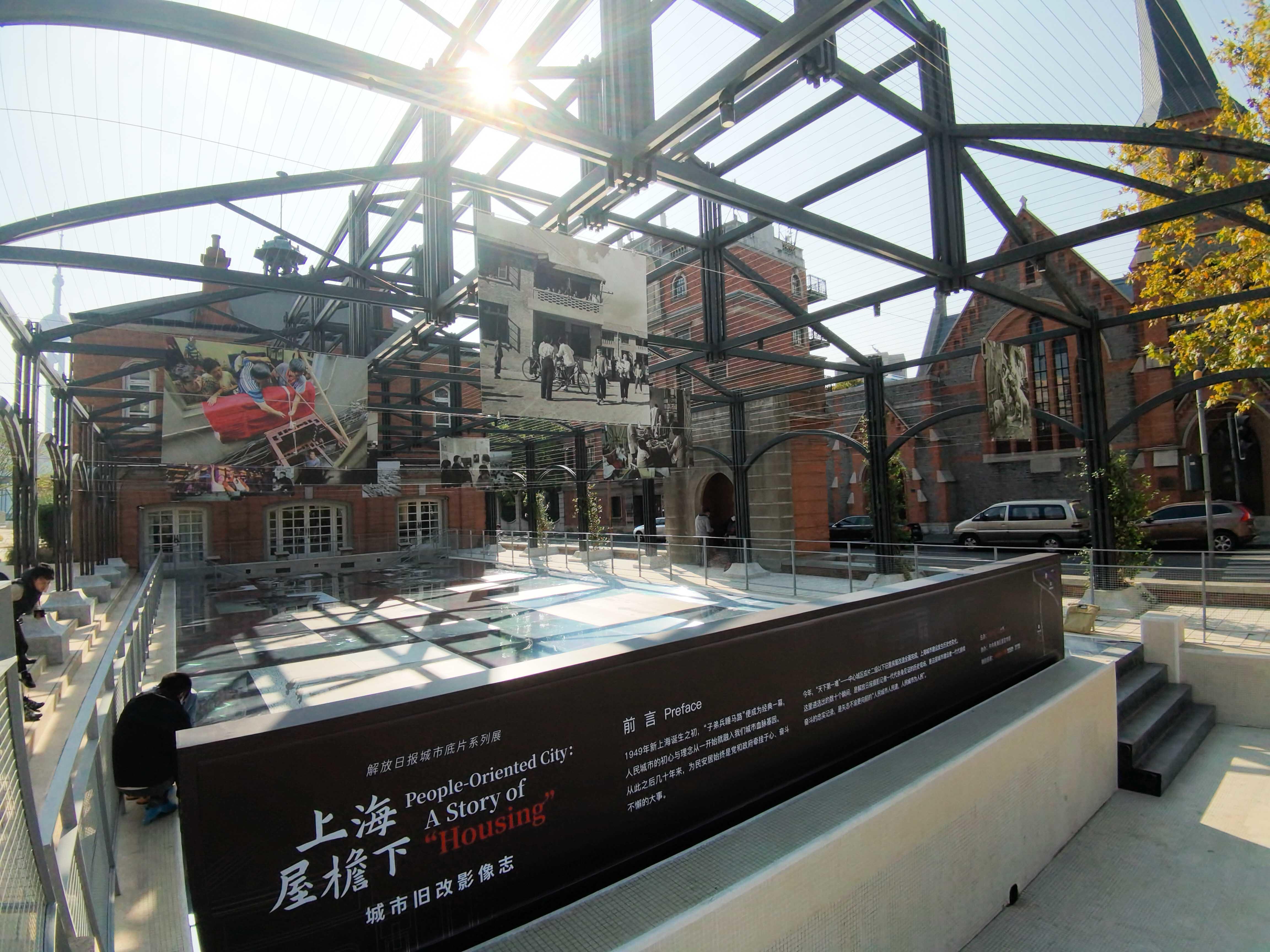 现场的展板上写着:解放日报城市底片系列展——《上海屋檐下》(城市旧改影像志)。