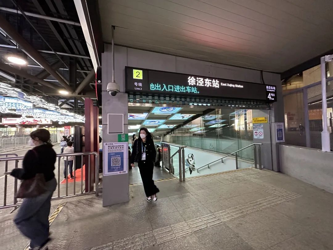 此外,为确保观展人员快速有序进站乘车,并同时实现“场所码”身份信息验证,针对下午集中离馆进站客流,结合今年进站“场所码”核验新要求,徐泾东站4号口外设置了2组无接触、不停留“验证门”。“今年每个出馆进站的参展人员快速有序通过徐泾东站4号口外设置的‘验证门’,无需再扫‘场所码’即可进站乘车。”民警向记者介绍道,离场时通过“人证过机”可实现人员信息轨迹留痕,最大限度减少客流积压。根据测算,2组验证门每小时通行能力为10800人,可满足进站客流需求。